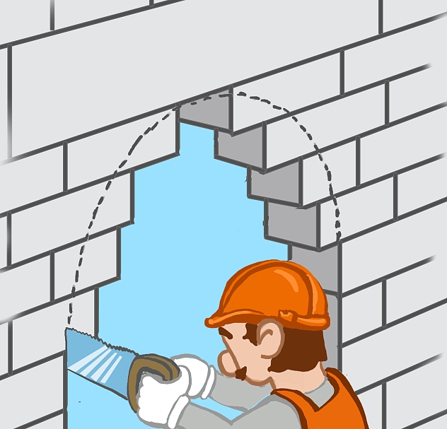 35. Оконные и дверные проемы сложной формы легко вырезаются ножовкой по газобетону (см. инструменты)