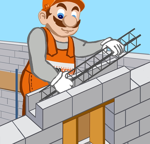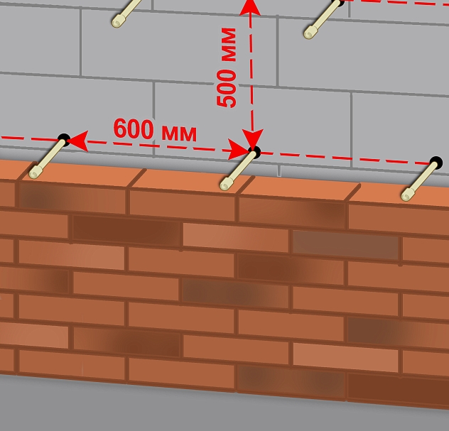 51. Необходимо армировать первый и каждый второй последующий ряды кладки газобетонных блоков. Для стен толщиной 400 мм необходимо применять не менее двух стержней d 8 мм