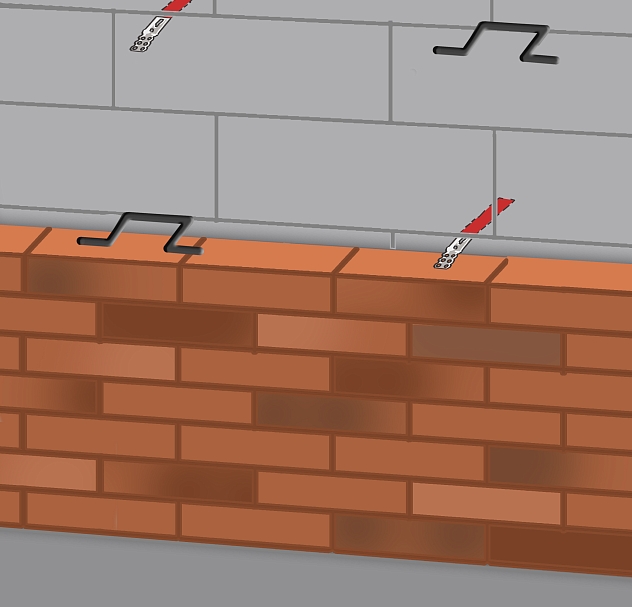 76. Гибкие связи обеспечивают создание вентирируемого зазора в 30-50 мм между несущей стеной из газобетона и облицовкой из кирпича.