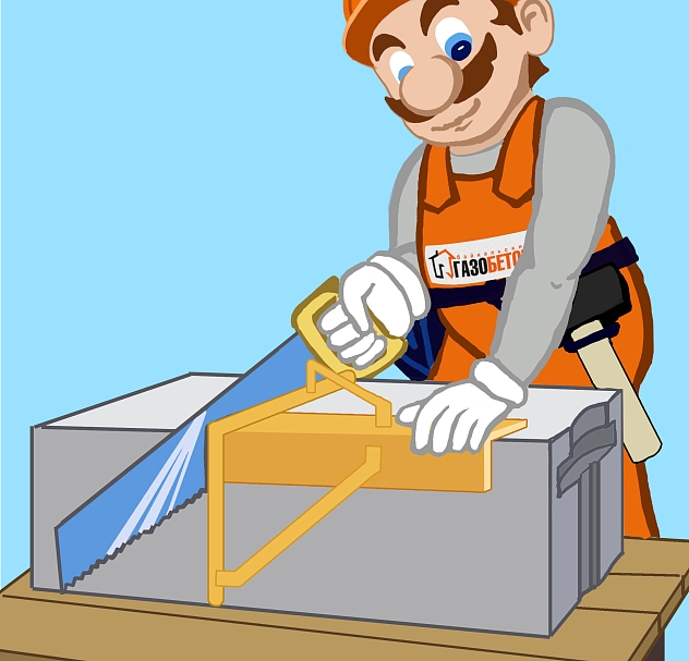 17. Доборные блоки легко выпиливаются при помощи ножевки (см. инструменты). Для обеспечения точности резки блоков и соблюдения прямых углов применяется угольник (см. инструменты)
