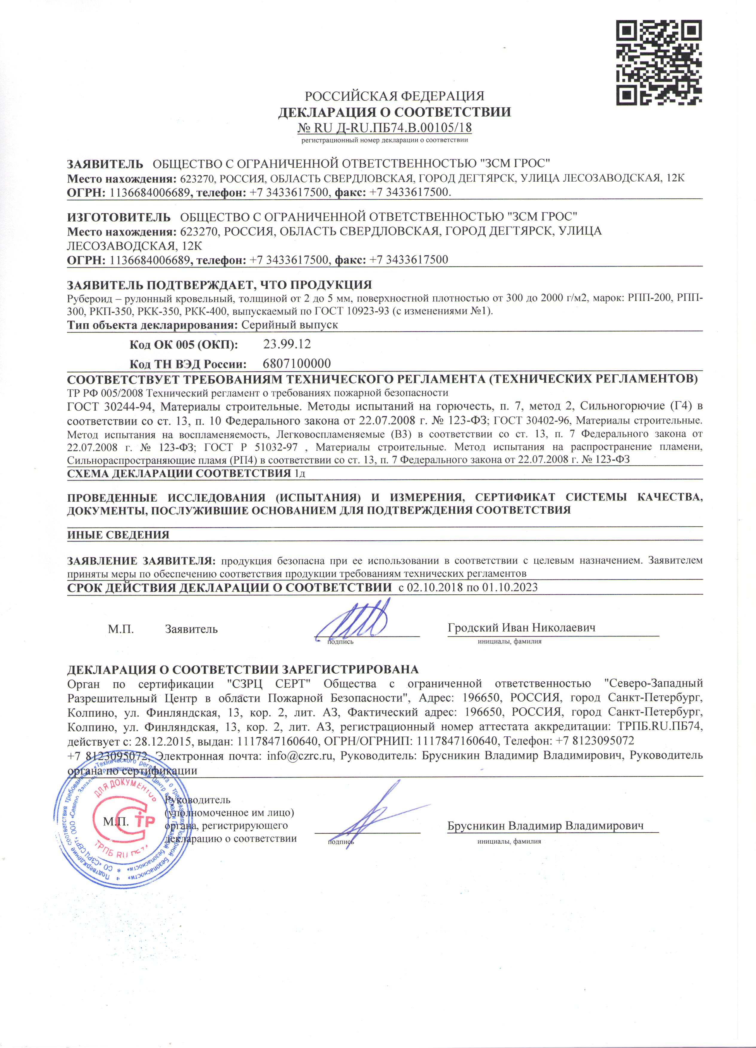 Декларация соответствия Экструзионный пенополистирол Пеноплэкс Комфорт