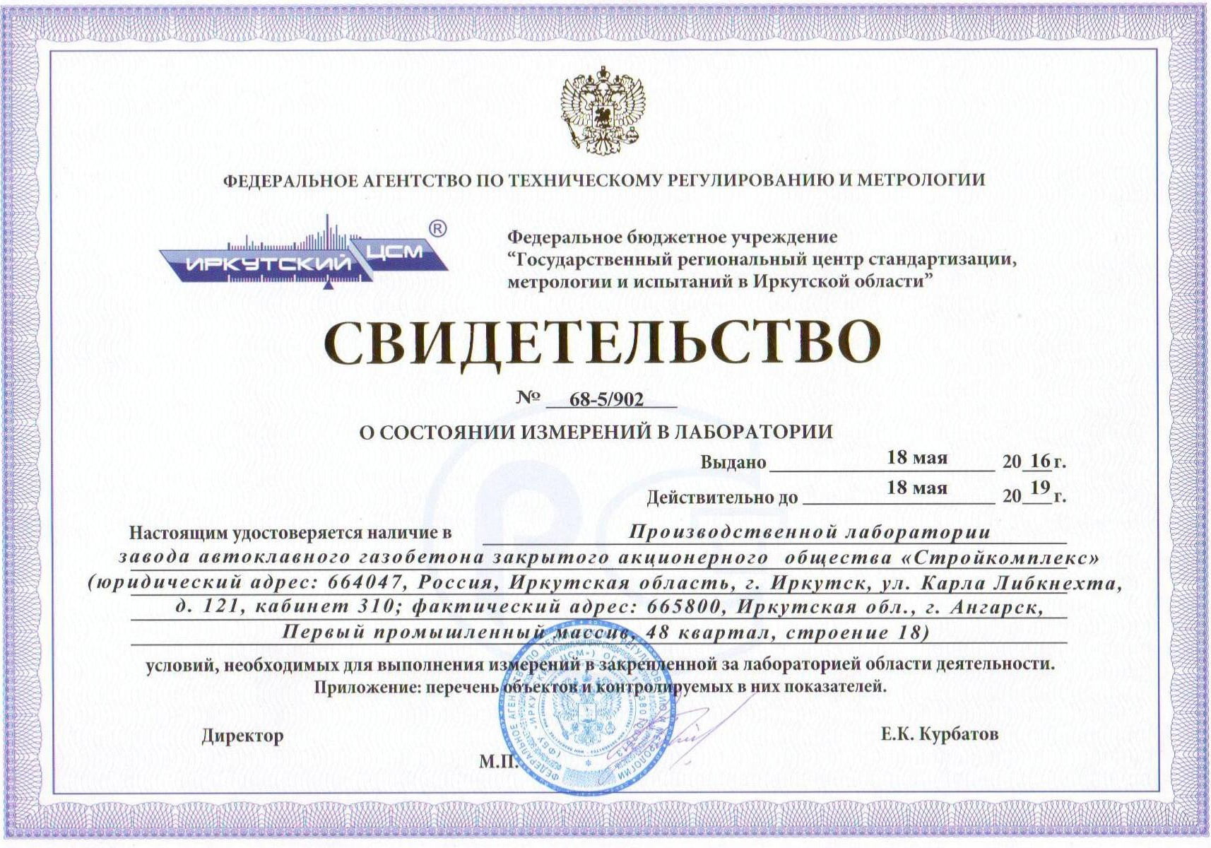 Св-во о оценки состоянии измерений в лаборатории 2016