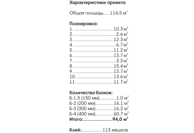 Газобетонных блоков 94,0 куб.м.