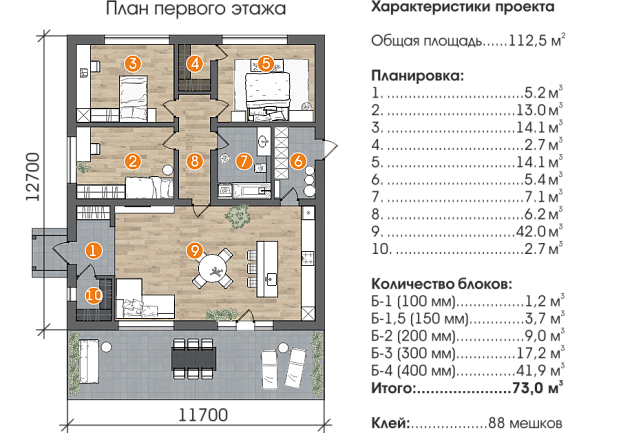 картинка Блок автоклавного газобетона Б3-500, (Краслэнд)